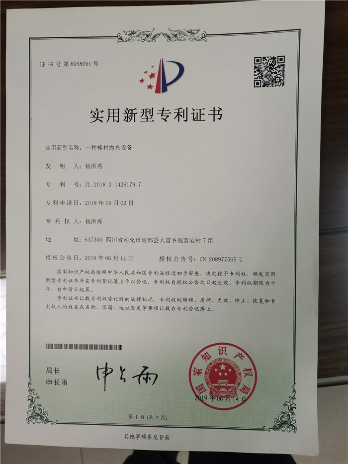 雙特制管機(jī)專利證書