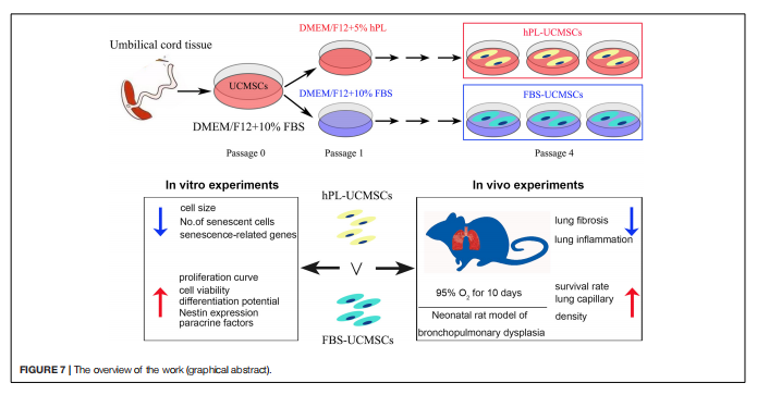 該研究證明了hPL作為UC-MSCs培養(yǎng)的補(bǔ)充添加物所具有的功能作用,表明其重要的臨床使用價值。這將有助于促進(jìn)hPL在未來UCMSCs規(guī)模化培養(yǎng)中的廣泛應(yīng)用,并為臨床BPD患兒的治療應(yīng)用提供更多幫助。